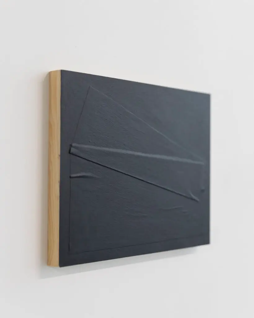 These mixed media panels showcase a vibrant variety of color, emphasizing dynamic form and movement. Each piece layers materials and texture to create a lively visual rhythm.