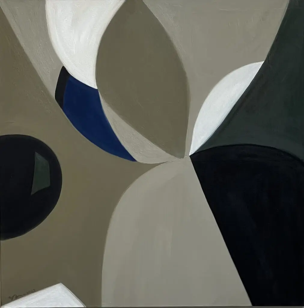 These abstract paintings in oil and acrylic range from intimate small works to large, commanding pieces. The work explores form, texture, and color through layered compositions that shift in impact with scale, offering both subtle detail and bold presence.