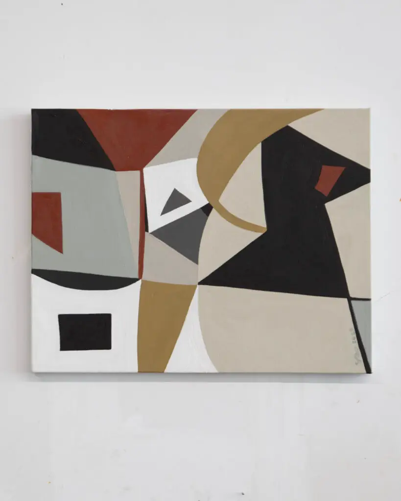 These abstract paintings in oil and acrylic range from intimate small works to large, commanding pieces. The work explores form, texture, and color through layered compositions that shift in impact with scale, offering both subtle detail and bold presence.